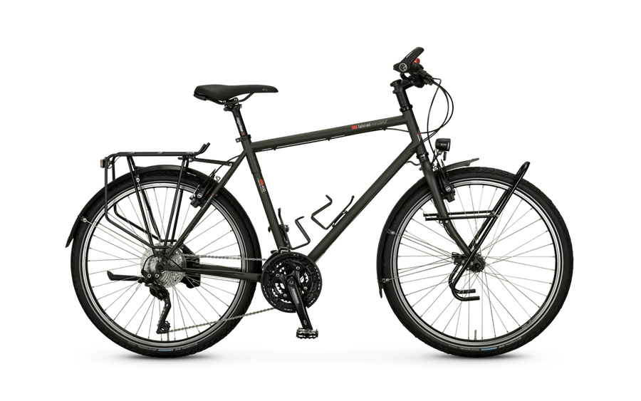 The TX-400 is a clever mix of geometry and parts. The long wheelbase displaces weight over a longer footprint, providing stability, and the seat and head angles prioritize comfort, control and efficiency. The top-of-the-line Shimano XT drivetrain is incredibly durable has a massive 570% gear range, letting you power fully-loaded up the steepest grades. The tried-and-tested Magura HS33 hydraulic rim brakes will slow and stop on the steepest hills on the rainiest days. Add the low-drag SP hub and super-bright 70 LUX Busch & Muller dynamo lights and you're safe those nights you arrive late (great safety as daytime running lights too). Finally, the Tubus racks - an absolute cult-like brand in the touring world - rounds out the TX-400 to the perfect travel companion.