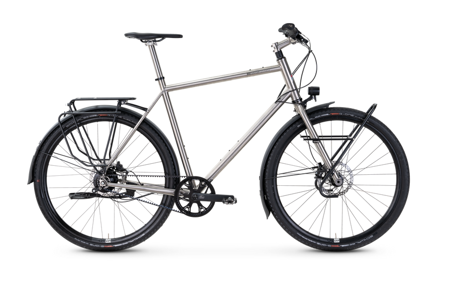 The touring bike is rounded off with practical equipment: sturdy Tubus pannier racks, bright Busch & Müller lighting, ergonomic grips and a comfortable saddle from SQlab make the Ti-1000 the ideal companion for discerning individualists - sustainable, reliable and uncompromisingly designed for touring.