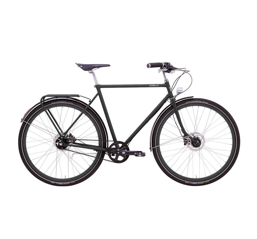 In Europe, a bike with an internal gear hub is what makes it a definitive city bike. Because the chain isn’t derailed up and down a set of external cogs (using a derailleur), the chain will never fall off again, and best of all, the chain can be covered so you can wear whatever you want. The gears are sealed inside the rear hub and they hold a tune two times longer than a derailleur, minimizing tune-ups and allowing you to store the bike outside throughout the winter problem-free.